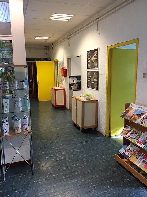 Terwijl de kinderen lekker genieten van de zomervakantie, werkten de schilders hard door om de deuren en kozijnen die daar bij horen van geel naar blauw om te zetten. Uitvoering: Juli 2017.