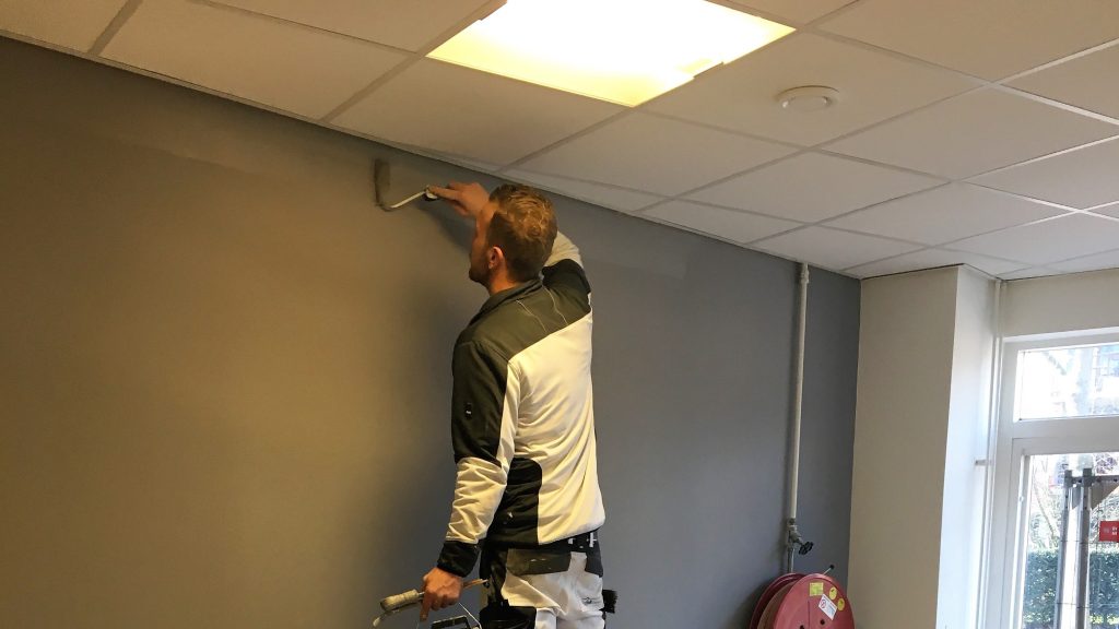 Binnenschilderwerk aan wanden en hout aan dit nieuw in te richten winkelpand in Beverwijk.