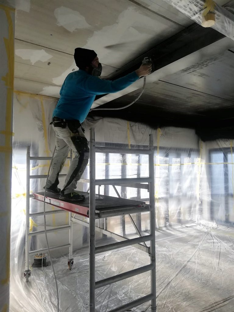 In Uithoorn hebben wij een kantoorpand aan de binnenzijde voorzien van een brandvertragende coating. Een fraai eindresultaat door de zwarte afwerking.